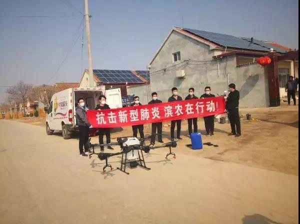 疫情爆發以后,為切斷病毒的傳播,且不影響人們日常生活,我公司飛防隊于1月30日為濱州市龍山小區等地進行消毒作業,總計作業面積達10萬平方米。2月13日,濱農飛防隊在無棣縣水灣鎮程家村、西小王鎮東小王村、栁堡鎮岳里村、馬山子鎮下泊頭村等區域進行了公益飛防,作業面積近60萬平方米。2月18日開始在沾化部分村莊進行消毒作業,預估作業面積60萬平方米。通過無人機全方位覆蓋、無死角快速消毒,減少了人員流動,避免了交叉感染,有效解決了鄉村疫情防控最后死角問題。