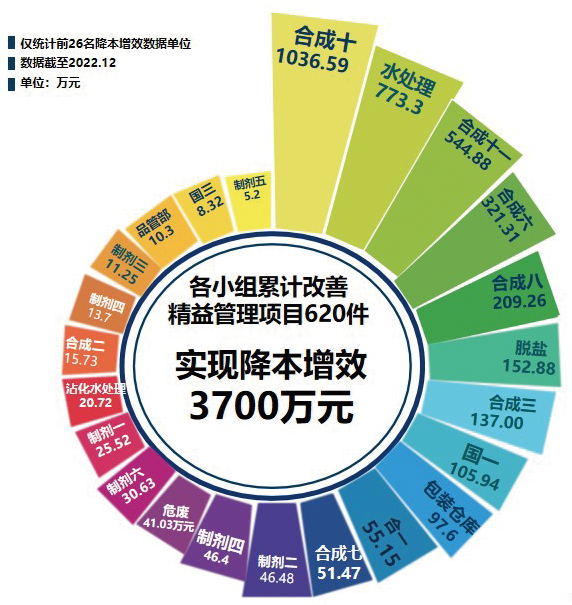 結合2022年各團隊改善績效及總結匯報及各系統分管領導評定,公司評選出六個年度優秀精益改善團隊:國一車間、制劑一車間、制劑三車間、水處理車間、合成六車間、合成一車間。